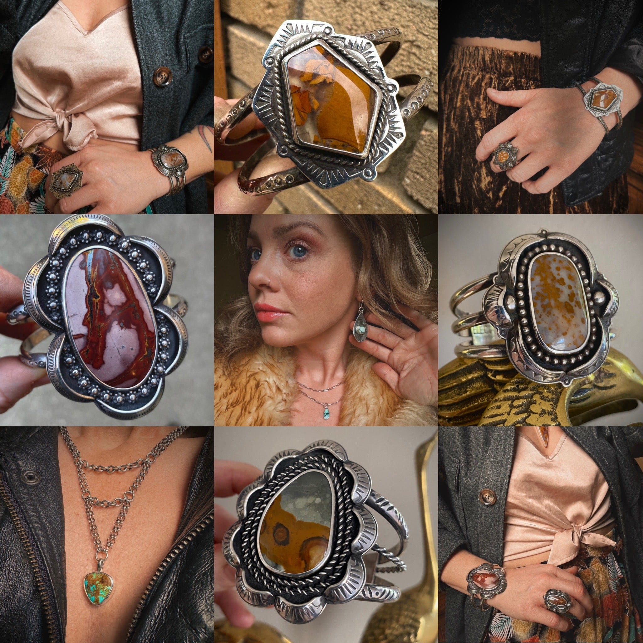 Compassionately sourced high caliber material ranging from Turquoise, Plume Agate, Jasper & more