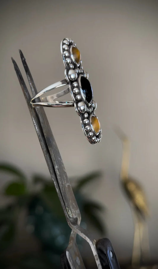 Black Onyx + Tigers Eye Cocktail Ring {size 8.5}