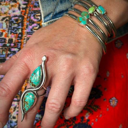 Sold outDueling Turquoise Snake Ring sz 7.5