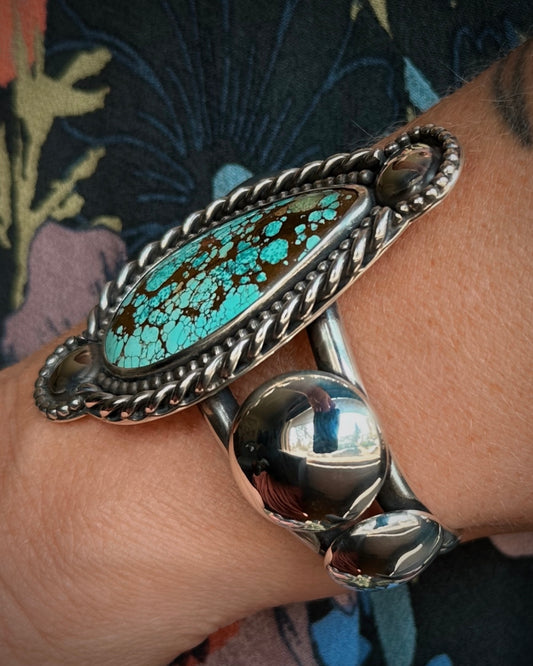 #2 Turquoise Flora Stacking Cuff {5.5" around 1" opening}