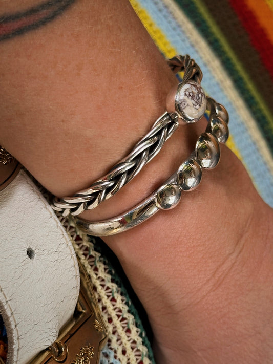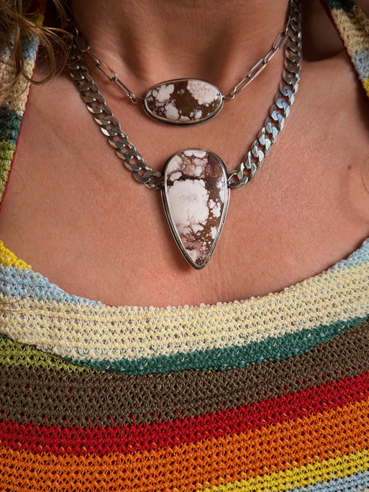 Spring 2025 Jewelry Stylings : A mini yet timeless collection of sterling and fine silver jewelry featuring Wild Horse stones. Wild Horse is mined in Arizona and cut in house for Electa Jewelry. Each piece in this collection is one-of-a-kind, handcrafted by silversmith Kellie Electa.