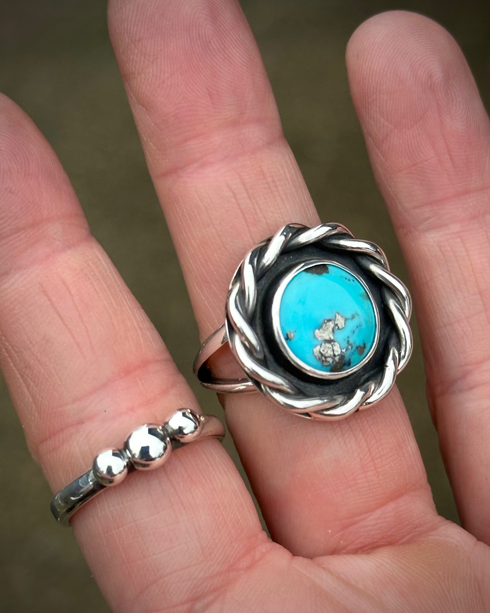 Nacozari Turquoise Roped Statement RIng {sz 8}